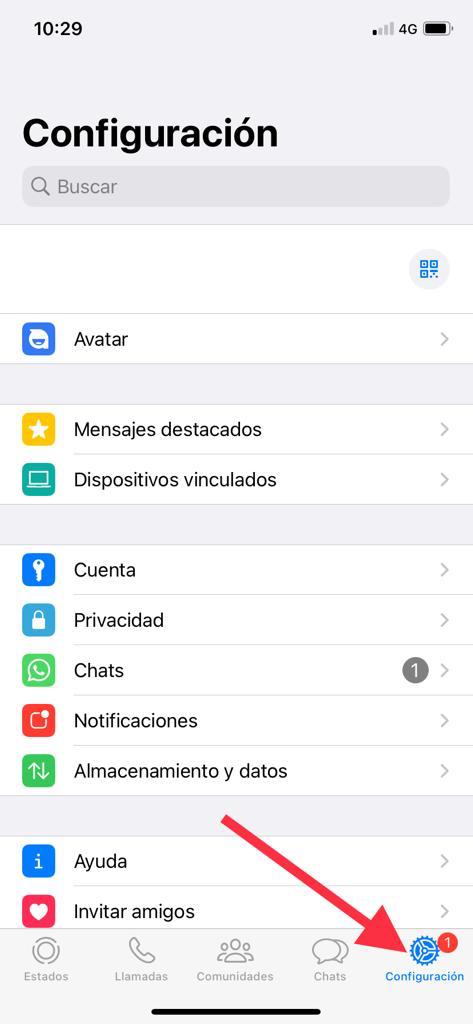 Para ello, lo primero que debes hacer es acceder a la aplicación de mensajería instantánea, dónde pulsarás en Configuración, un botón que encontrarás en la parte inferior derecha de la pantalla, tal y como puedes ver en la siguiente imagen: