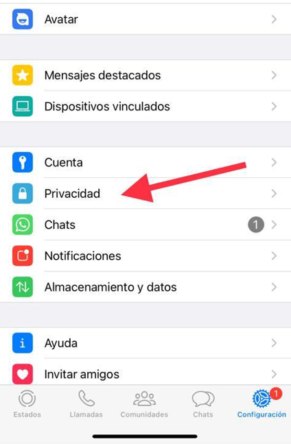 A continuación tendrás que pulsar en la opción Privacidad, que podrás encontrar junto al icono de un candado, justo después de la opción «Cuenta»: