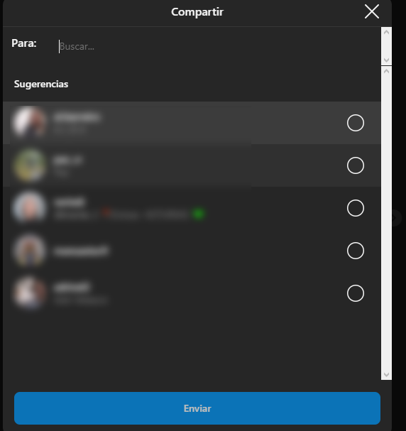 Una vez que se ha pulsado sobre el icono del botón de papel nos aparecerá una nueva ventana, en la que tendremos que seleccionar uno o más contactos de Instagram a los que queramos enviar la historia de otra persona. Podrás ir buscando a todas esas personas con las que quieres compartirlo y tienes la posibilidad de añadir un comentario en el campo para escribir que se encuentra sobre la lista de contactos. De esta manera, a esas personas les llegará a su cuenta de Instagram un mensaje privado enviado por ti con la historia compartida para que puedan visualizarla.