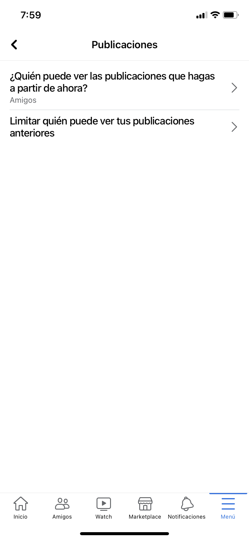 - En ella te encontrarás con dos opciones para que puedas configurar que no se puedan compartir tus publicaciones de Facebook, ocultándolas a quién lo desees entrando en estas opciones:
