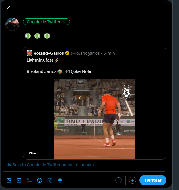 - Una vez que hayamos pulsado sobre Citar Tweet, nos aparecerá una nueva ventana para hacer nuestra publicación, en la que podremos añadir un texto adicional o añadir emojis (o caracteres) y elegir las personas con las que deseamos compartirlo, entre otras opciones, para finalmente, una vez lista nuestra publicación, pulsar sobre Twittear.