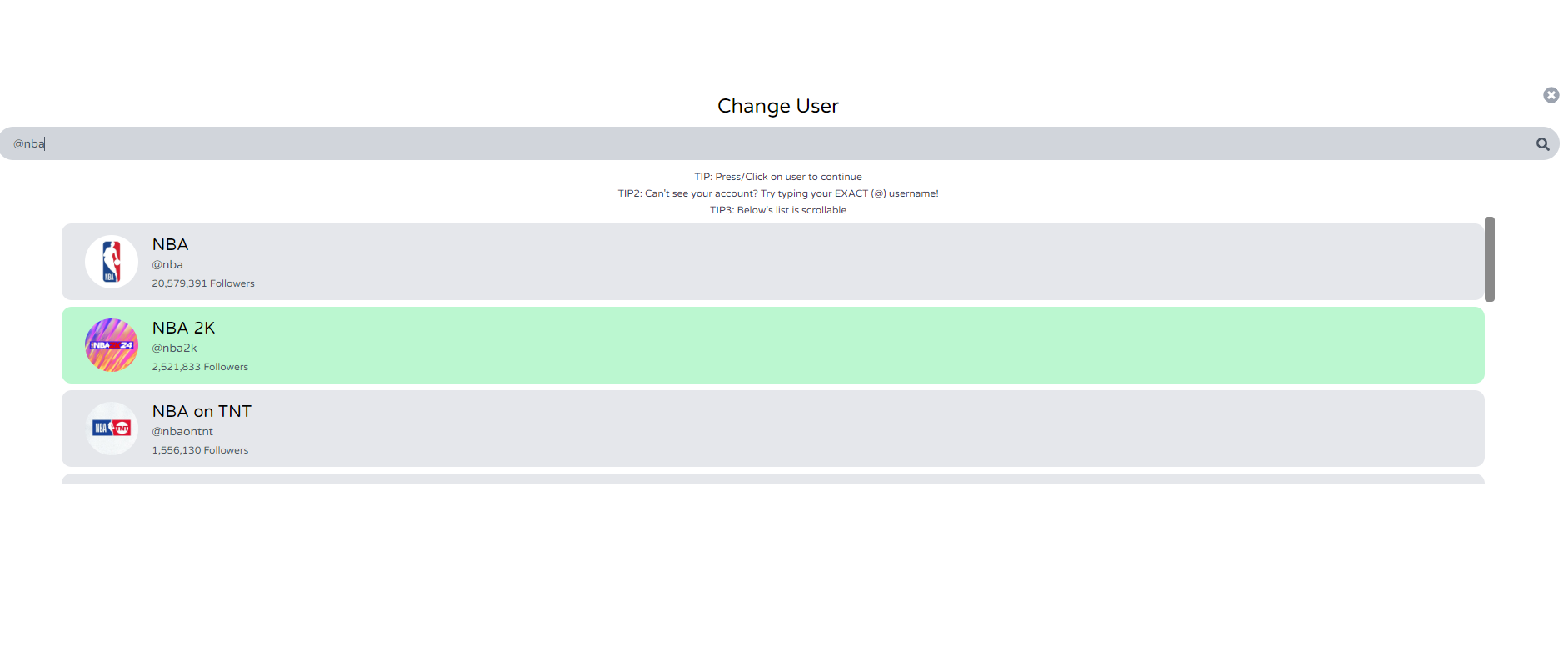 - Tras introducir y realizar una búsqueda nos aparecerá una lista de resultados, y tan solo tendremos que elegir la opción deseada para que cargue la pantalla. En ella podrás acceder a los datos de la cuenta: