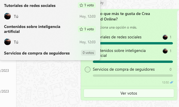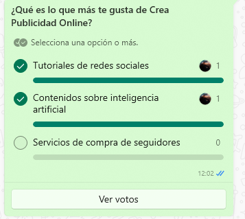 Una vez que comience a haber votos, podrás pulsar sobre Ver votos para poder encontrar los datos de lo votado por los usuarios del grupo, una función que es más que interesante.