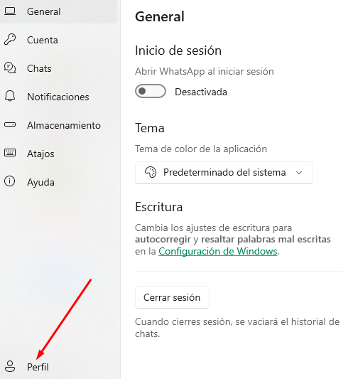 Será tan sencillo como acudir a cualquier lugar y copiar ese especio en blanco, para luego acudir a WhatsApp, concretamente a la opción de Ajustes, donde nos aparecerá una ventana similar a la siguiente, y en la que tendremos que pulsar sobre Perfil, tal y como te indicamos en la siguiente imagen: