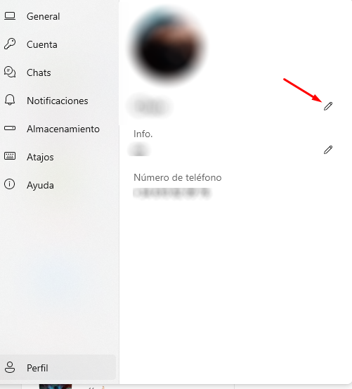 Tras pulsar sobre Perfil nos encontraremos con una nueva ventana, en la que habrá que pulsar sobre el icono del lápiz para editar el nombre, en el cual se pegará el espacio en blanco para así hacer que el nombre deje de aparecer en Whatsapp: