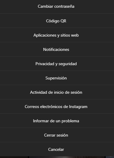 Para ello, en primer lugar accederemos a la web de Instagram, y una vez que nos encontremos en ella tendremos que pulsar sobre el icono de nuestro perfil, lo que nos llevará al propio perfil, donde habrá que pulsar sobre el botón de la rueda dentada. Una vez que lo hayamos hecho veremos que nos aparecen diferentes opciones en pantalla, que son las siguientes: