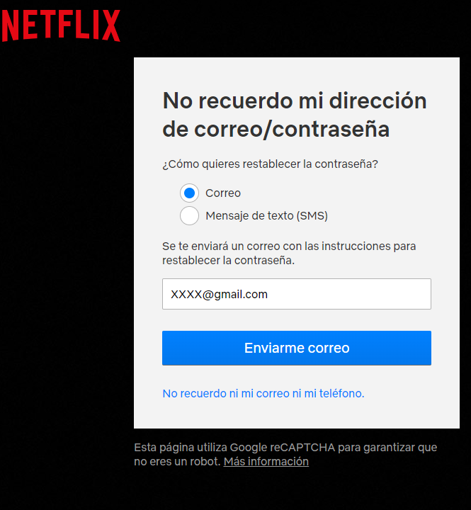 Cómo recuperar cuenta o contraseña de Netflix con el número de teléfono