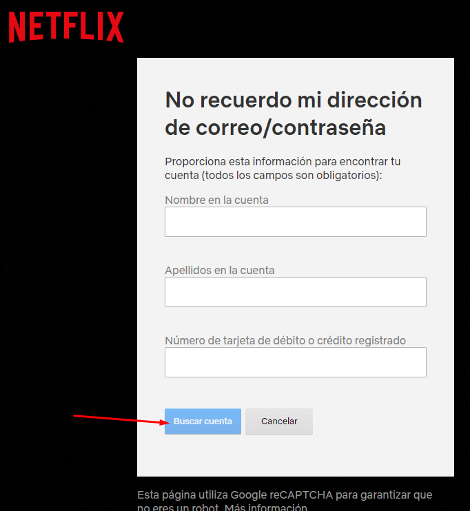Cómo recuperar cuenta o contraseña de Netflix con el correo electrónico