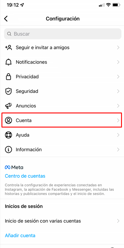 - A continuación tendrás que pulsar sobre Cuenta, lo que hará que te aparezcan nuevas opciones, que son las siguientes: