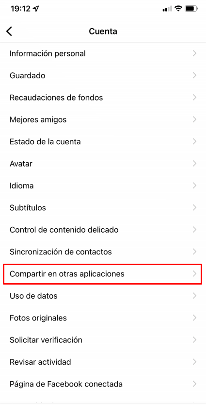 - En este nuevo menú tendrás que acceder a la opción Compartir con otras aplicaciones: