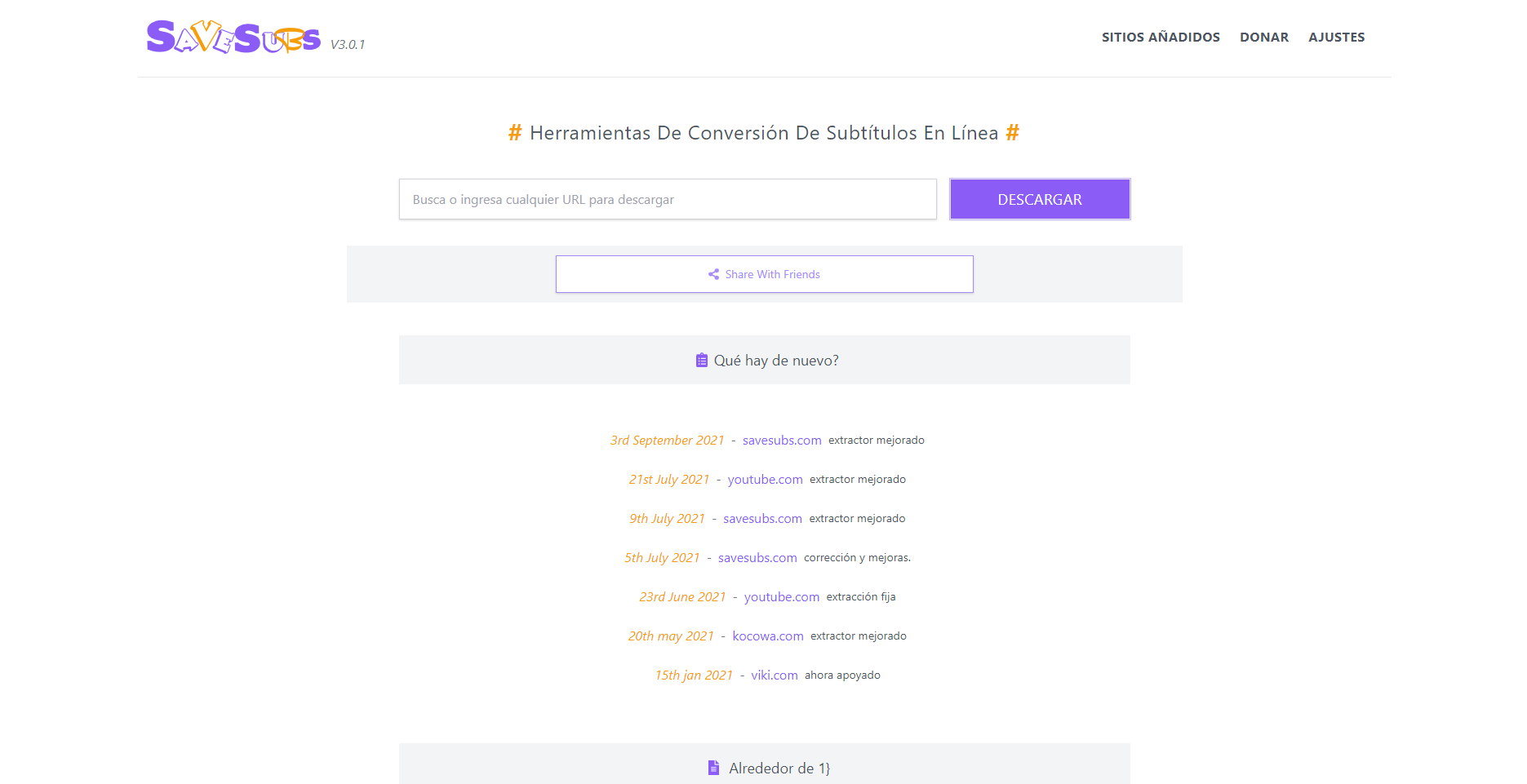 Los pasos a seguir para descargar los subtítulos de vídeos de YouTube deberás acudir a la web de Savesubs, para lo cual puedes pulsar AQUI. Una vez que te encuentres en ella te encontrarás con la siguiente página: En la web te encontrarás con un campo en el que introducir la URL del vídeo en cuestión, siendo el proceso tan sencillo como colocar la dirección del vídeo de YouTube y posteriormente pulsar en Descargar. Al hacerlo te encontrarás con que te aparecen varias opciones que son las siguientes: